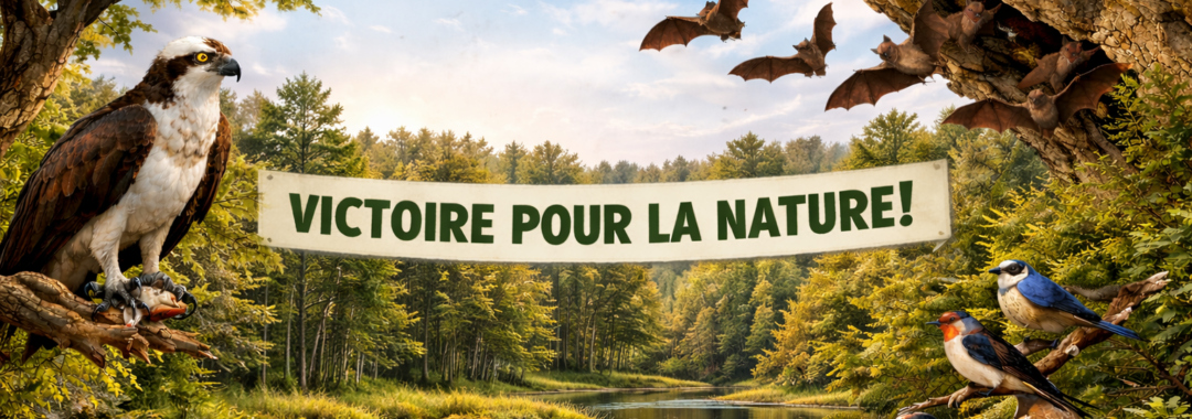 Elle avait par ailleurs mis au grand jour la non prise en compte du Balbuzard Pêcheur. S’en est suivi une étude de 2 ans diligentée par le promoteur, mais qui n’aura pas empêché la conclusion prévisible de l’incompatibilité totale d’un tel projet avec la survie de cette espèce ultra protégée en forêt de Rennes.